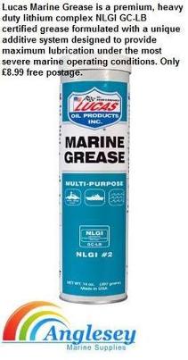 Lucas Marine Grease cartridge is a premium, heavy duty lithium complex NLGI GC-LB certified grease formulated with a unique additive system designed to provide maximum lubrication under the most severe marine operating conditions. Perfect for greasing up boat tilt tubes, boat steering cables, outboard engines, boat trailer bearings.