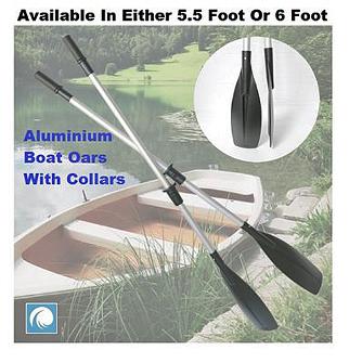 Anodized aluminium Boat oars with Collars and plastic blades. These oars are sold in pairs. They come complete with easy grip handles and oar collars. Available in two sizes 160cm in length or 185cm in length.