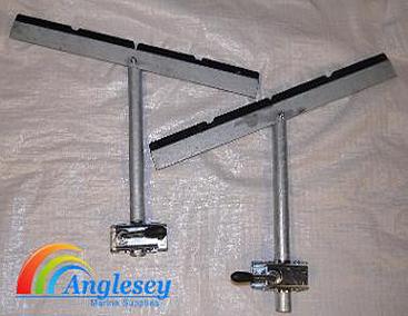 Boat trailer rollers long side snubbers supports, ideal for supporting under boats with cathedral hull, Seahog, Cjr, etc. Also ideal for running under tubes on inflatable boats and supporting air decks. Supports are non marking 600mm long. Poles are 400mm long (can be made longer if requested). Comes complete with split clamps.