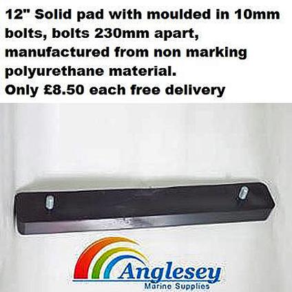12" Solid boat trailer Rubber pad with moulded in 10mm bolts, bolts 230mm apart, manufactured from non marking polyurethane material.